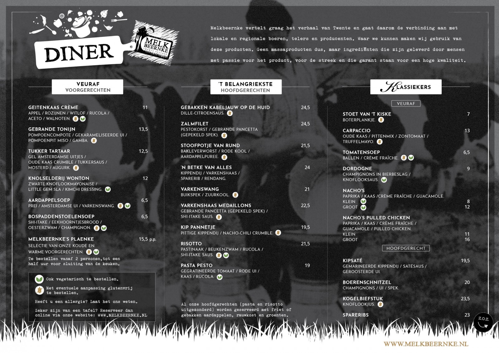 Melkbeernke vertelt graag het verhaal van Twente en gaat daarom de verbinding aan met lokale en regionale boeren, telers en producenten. Geen massaproducten dus, maar ingrediënten die zijn geleverd door mensen met passie voor het product en voor de streek en die garant staan voor een hoge kwaliteit. Dat betekent ook dat veel met seizoensproducten wordt gewerkt en de kaart dus voortdurend verandert.